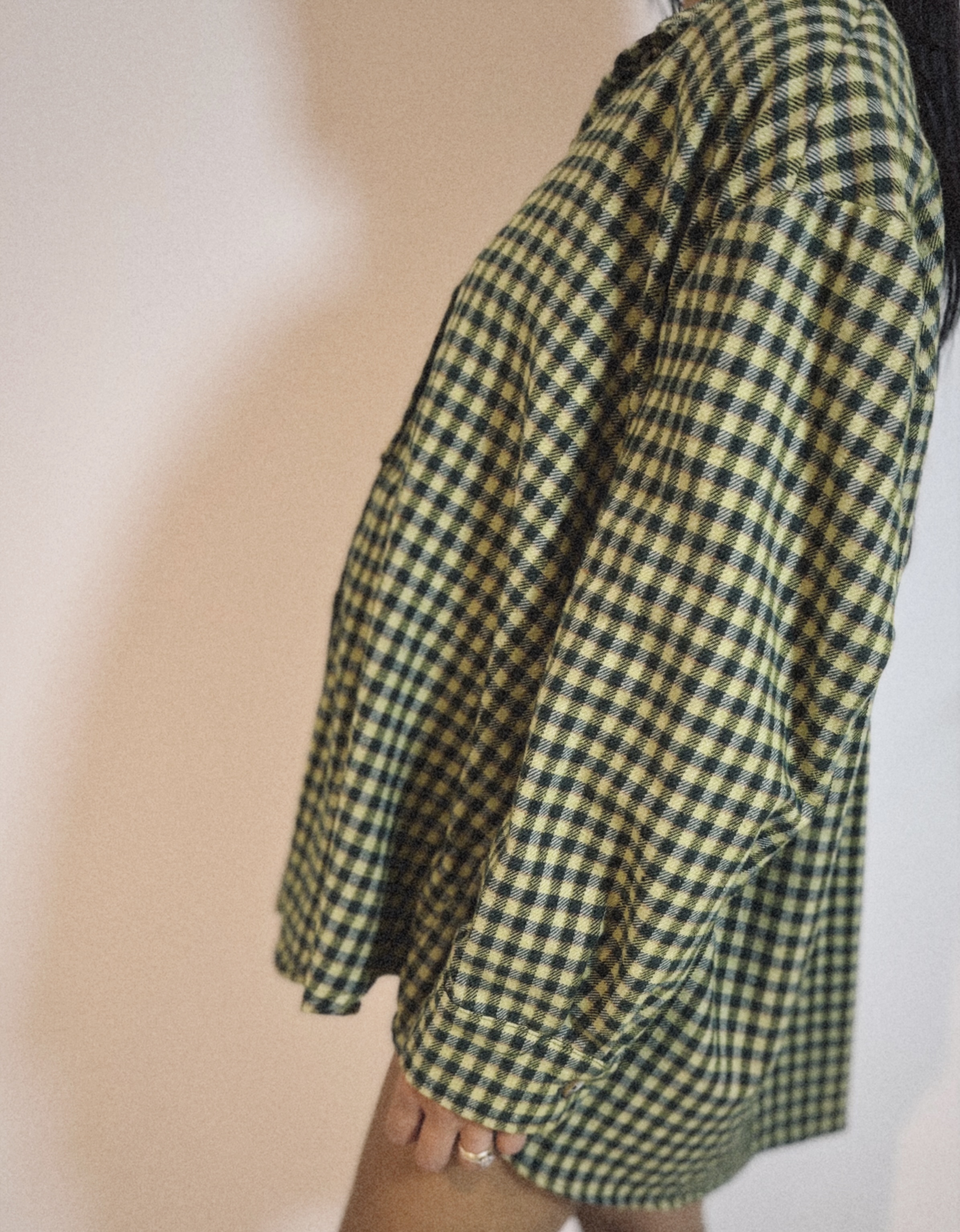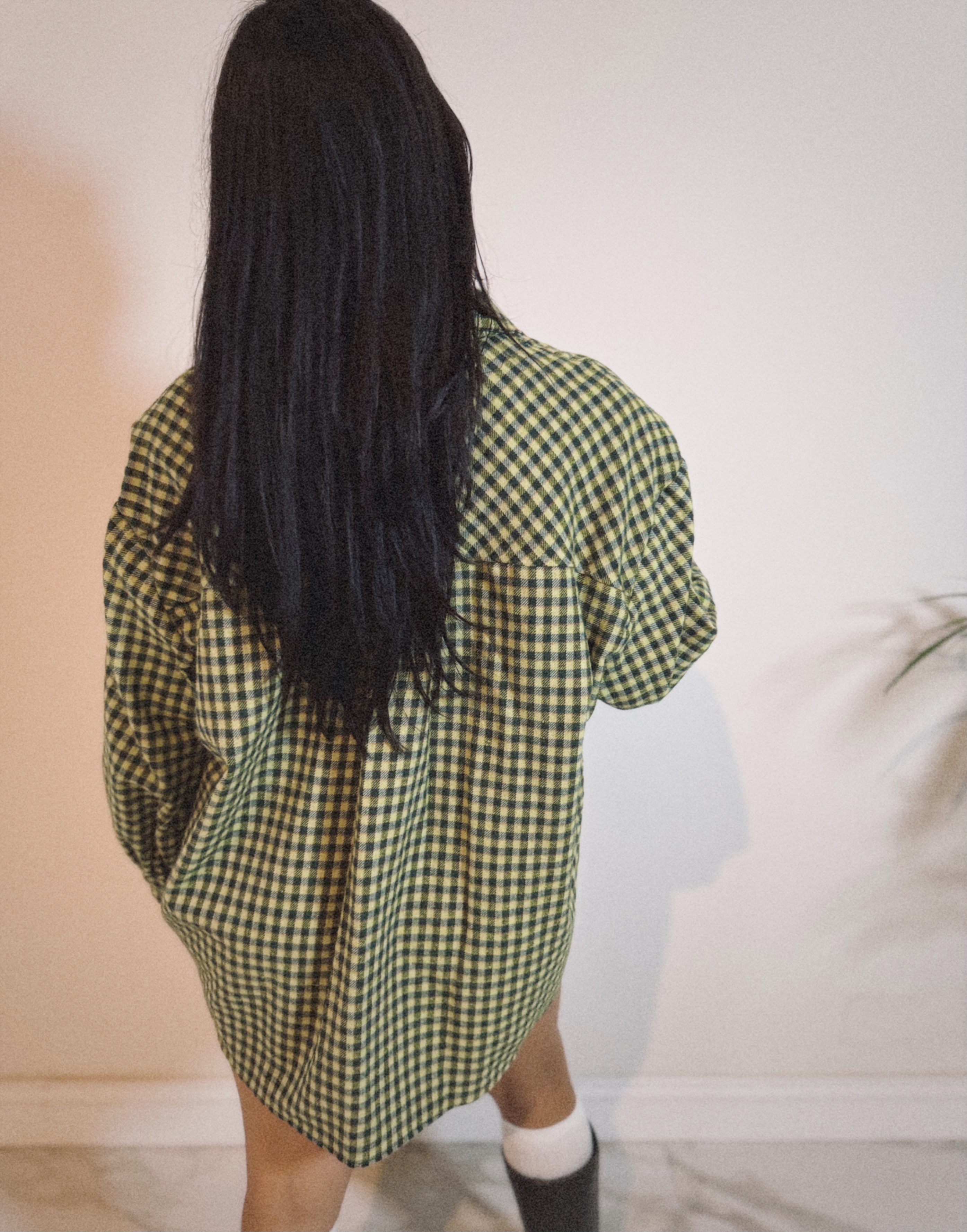 Camicia Over con Spalline Quadretti Verde Oliva