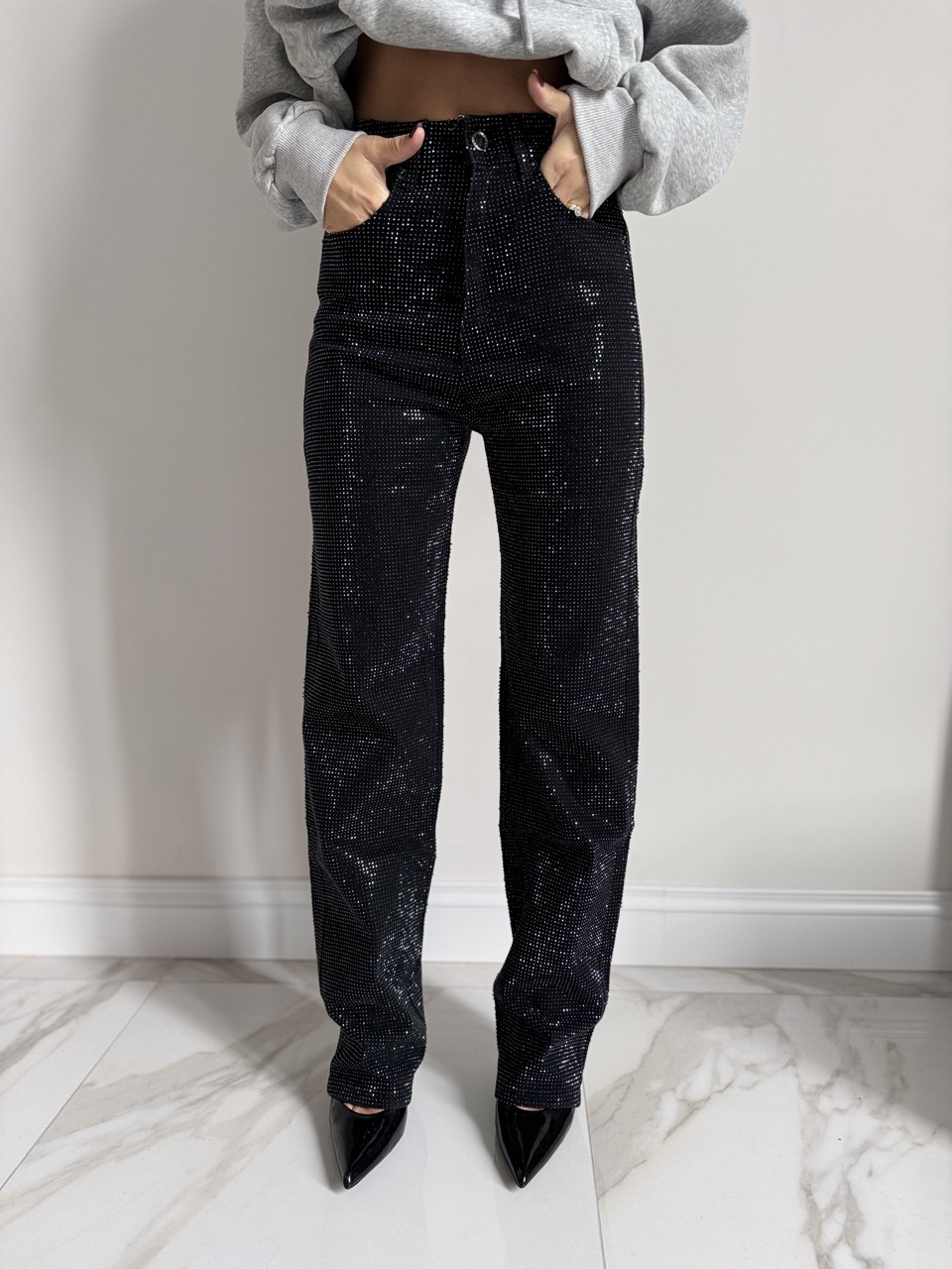 Jeans Strass Nero