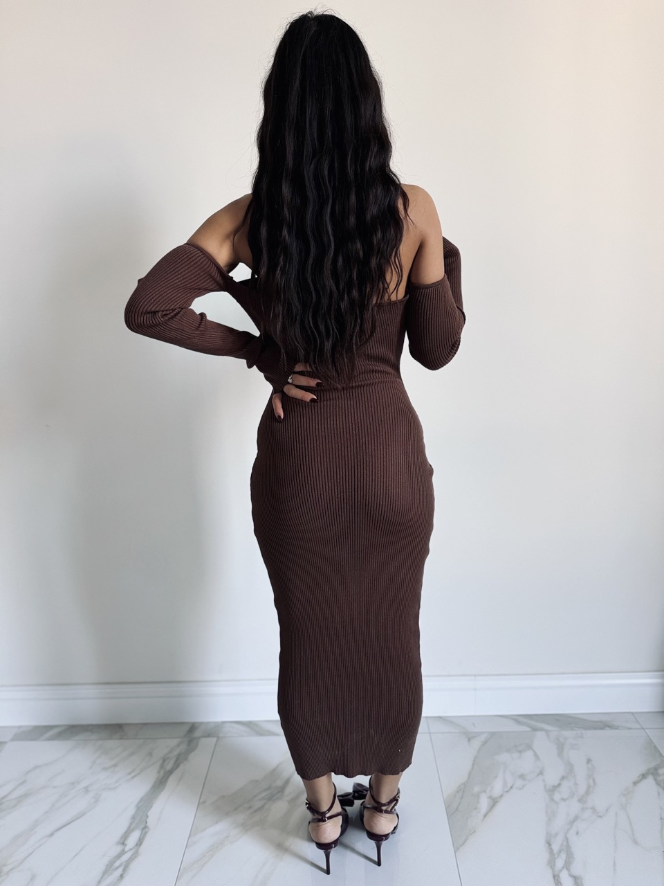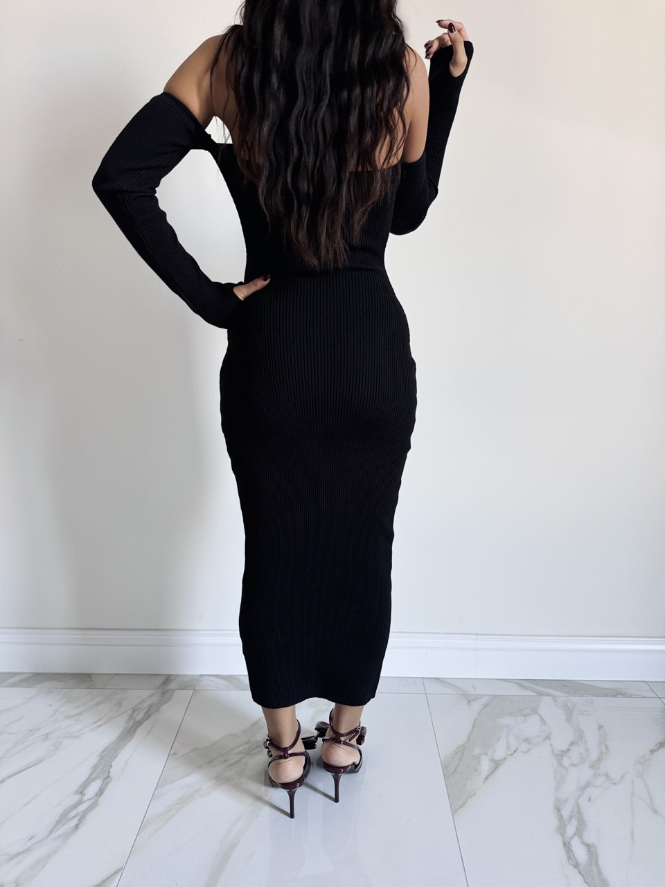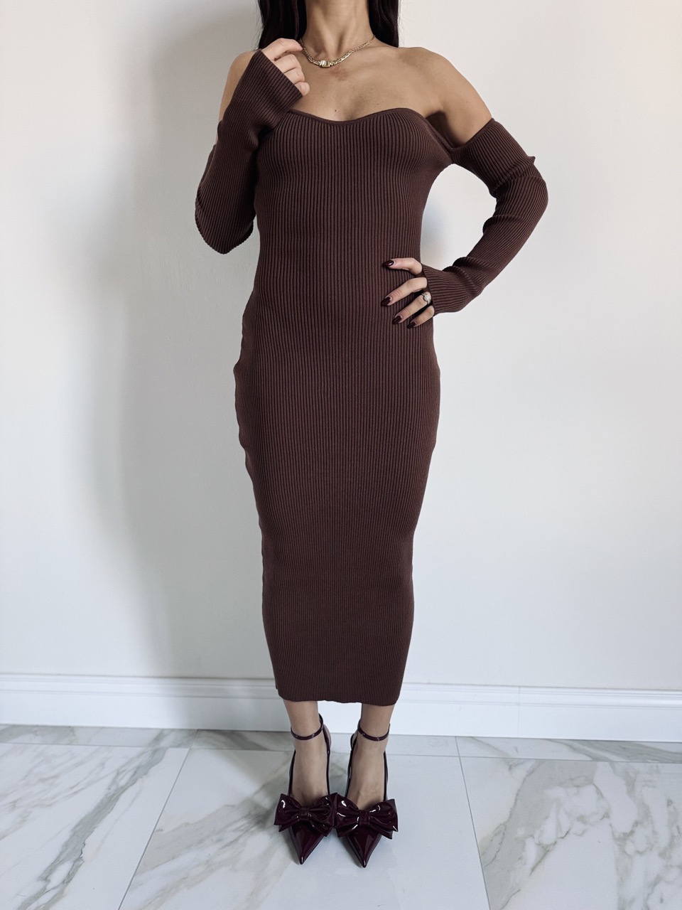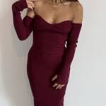 Vestito in Maglia Scollo a Cuore Manica a Guanto